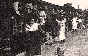 & French Girl Giving Wine to Algerian Troops Passing Through