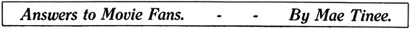 Editorial content. „Answers to Movie Fans. – – By Mae Tinee“ (...)