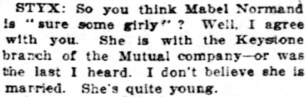 „STYX: So you think Mabel Normand is ,sure some girly‘?