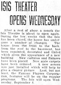 & ISIS THEATER OPENS WEDNESDAY