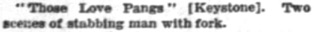 Those Love Pangs (Keystone). Two scenes of stabbing man