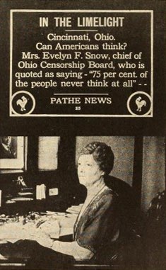 – Mrs. Evelyn F. Snow, deposed censor Czarina of Ohio,
