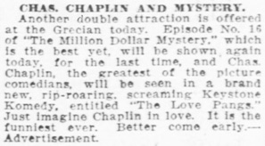 Advertisement. „Chas. Chaplin and Mystery. Another