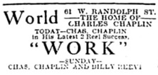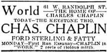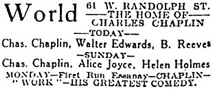 – Sunday – Chas. Chaplin, Alice Joyce, Helen Holmes