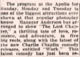 im Apollo an.“ Bildlegende: „Charlie Chaplin hat im neuen
