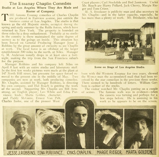 Jesse J. Robbins. Edna Purviance. Chas. Chaplin. Margie
