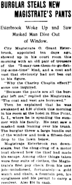 City Magistrate O. Grant Esterbrook, appointed ten days ago, showed up in his court room this morning with an old pair