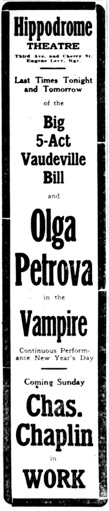 Manager.“ (...) „Coming Sunday Chas. Chaplin In Work.“