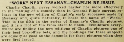 Editorial content. „,Work‘ Next Essanay-Chaplin Re-Issue.